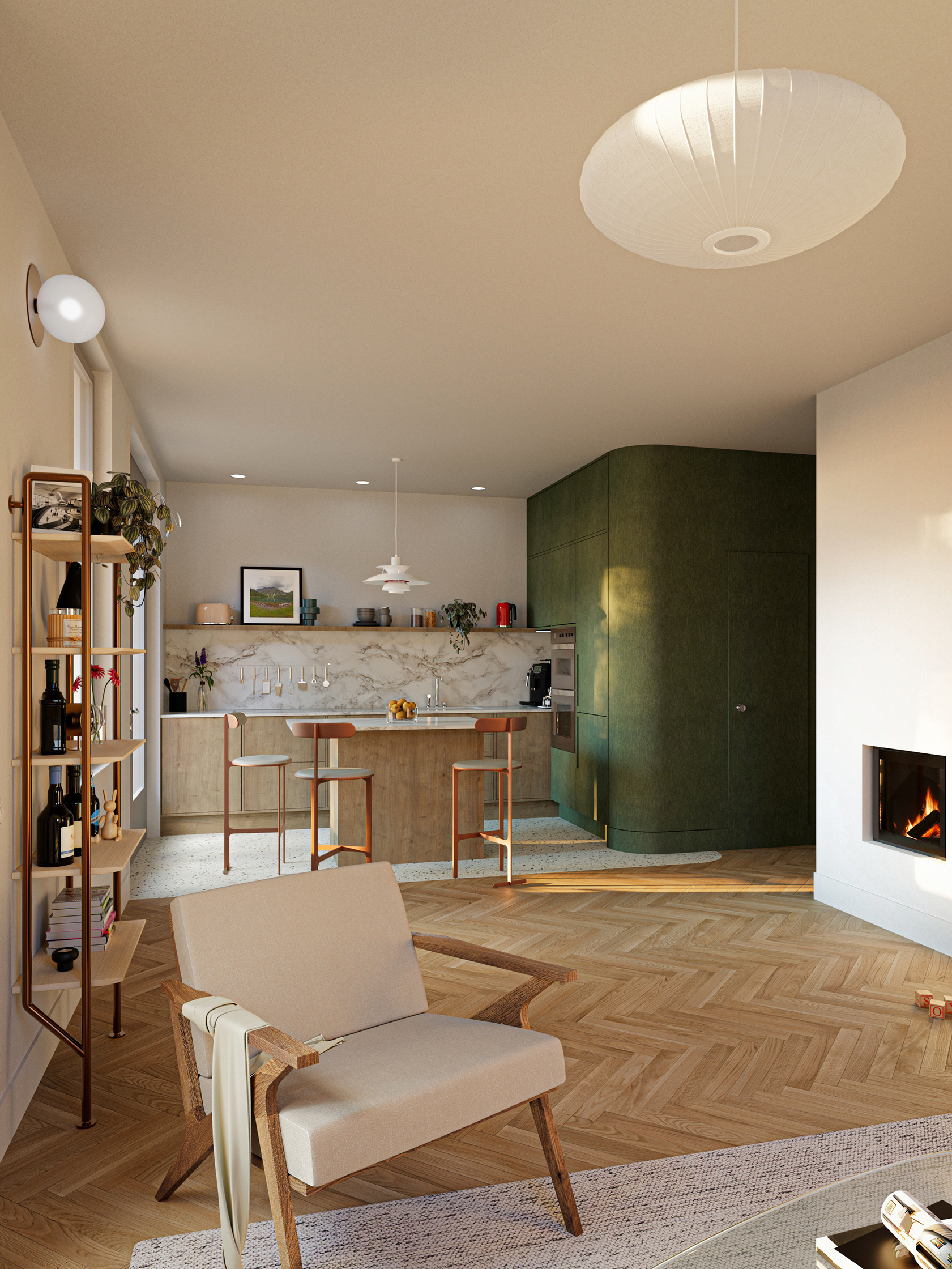 Le projet travaille avec les volumes existants, sans extension, en révélant leur spatialité d’origine. Le niveau de rez-de-jardin, autrefois utilisé comme cave, est rouvert et rendu habitable, permettant de reconnecter les différents étages et de tirer parti de la verticalité centrale du bâtiment. Ce dispositif rappelle la lumière traversante du transept, par des percements réinterprétés sur plusieurs orientations.