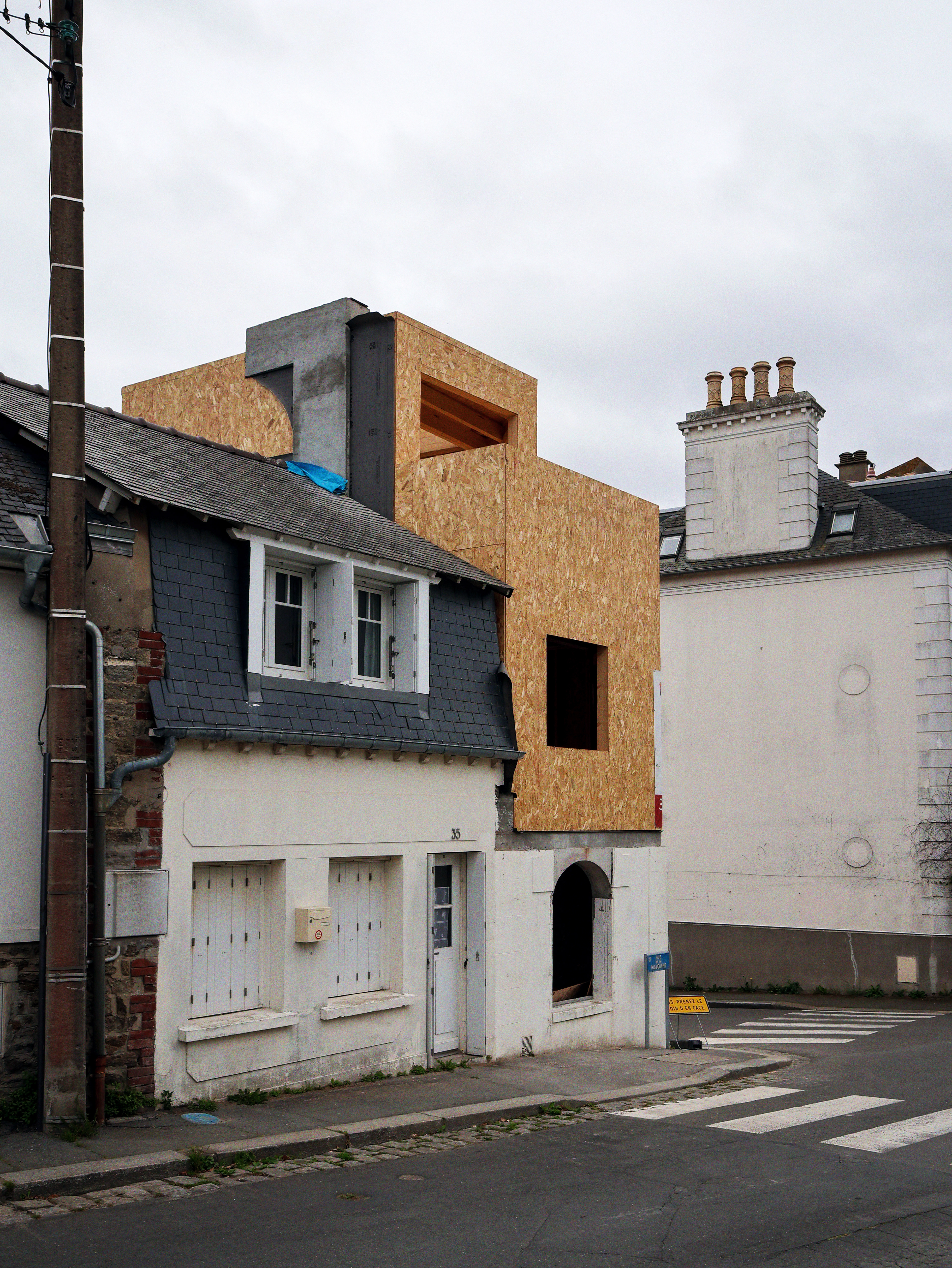 Le projet, situé au cœur de Saint-Malo intra-muros, porte sur la transformation complète des combles pour y créer un appartement en duplex. Implanté dans un environnement urbain dense et complexe, l’intervention a dû composer avec des contraintes d’accès au chantier et des volumes atypiques.